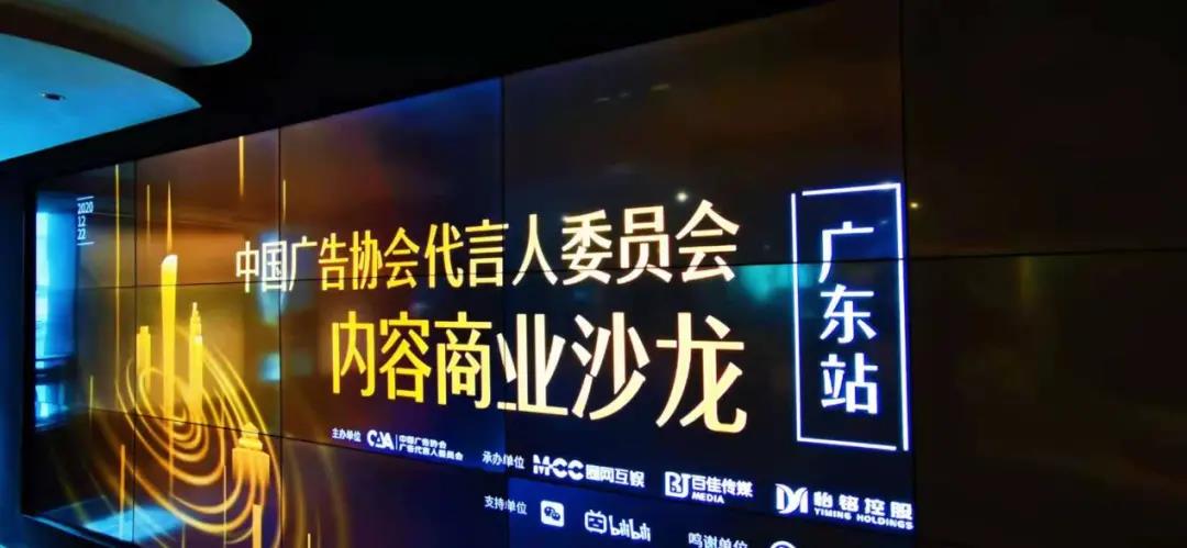 2020年12月22日,由天游登录平台首页广告代言人委员会主办,MCC圈网互娱、百佳传媒、怡铭控股公司联合承办的“广告代言人内容商业沙龙——广东站”在广州市腾越大厦成功举办,本次沙龙还得到了微信视频号、bilibili(B站)的大力支持。这是中广协广告代言人委员会第一次走出北京,本次沙龙邀请相关营销专家及平台专家一起“赋能广东”,共同讨论“明星代言人、网红、直播、短视频、游戏互娱、潮流音乐、动漫二次元”等营销内容商业化方面的热点问题。